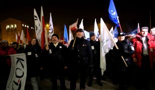 Pod siedzibą telewizji polskiej na placu powstańców zebrał się tłum ludzi.